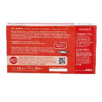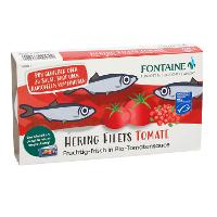 HERINGSFILETS (Clupea Harengus)(60%), Tomatenmark* (22%), Sonnenblumenöl*, Tomatenstücke* (5%), Wasser, Rohrohrzucker*, Meersalz, Branntweinessig*, Gewürze*, Verdickungsmittel: Guarkernmehl*, Zitronensaftkonzentrat*.| Energie | Fett | gesättigte Fettsäuren | Kohlenhydrate | Zucker | Eiweiss | Salz |