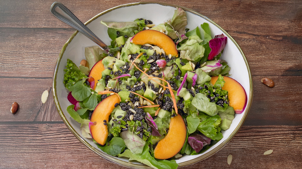 Sommersalat mit gebackener Zucchini, Mais und Nektarinen